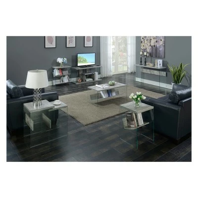 Get in the orbit of the SoHo Bookcase that is perfect for any modern space. With a generous faux birch finish top surface, you will have plenty of space to store your decor or pictures. The tempered glass sides catches the eye and makes this bookcase a sparkling addition in any room. This decorative yet practical piece has a convenient stylish two lower shelves for plenty of added display and storage. Will provide years of enjoyment.