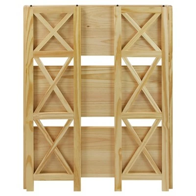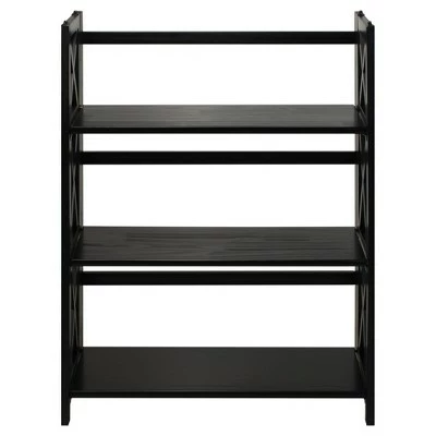 Sturdy and stackable, the X-Design 3-Shelf Folding Bookcase is ideal for any storage. 3 shelves to maximize storage and decorative displays. Stackable design allows your storage and home design to grow when you need them to. Effortless foldable engineering means you can transport or store with ease. Constructed from solid wood for lasting beauty. No assembly required. Product dim (expended): 27.5″W x 11.5″D x 38″H. Folded dim: 27.5″W x 2.5″D x 38″H.