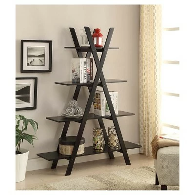 Spruce up any room in your home with the Oxford A Frame Bookcase by Breighton Home. This contemporary bookshelf offers 4 tiers of open concept shelving. The shelves, crafted from MDF, give plenty of space for your book collection, décor or even plants. If needing additional storage, turn this bookcase into a fashionable storage unit by adding decorative baskets. Featuring clean lines, this piece is sure to be a staple in your home. Look for coordinating pieces from the Oxford Collection by Breighton Home, each sold separately.