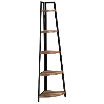 The 5-Tier Corner Ladder Display Shelving Unit Metal & Distressed Wood Finish by Danya B. is a great space-saving solution that doesn’t skimp on style. Make the most of an empty corner by displaying collections, picture frames, books, magazines, or tabletop decor. The shelves are beautifully distressed and arranged in ascending size, while a lovely black-finished metal frame contributes to the contemporary industrial flair.