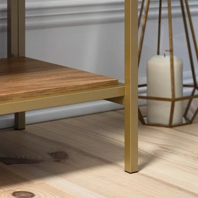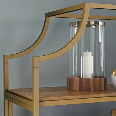 When you look around your home, you want to find your most loved items displayed on something that is as special as your memories are. Honor those treasured objects and your home with this 5 shelf bookcase from the International Lux collection. Finished in Sindoori Mango®, five levels of open shelving are dedicated to being the perfect place for your favorite books, cherished décor or treasured vacation mementos. This tall metal frame bookcase adds the perfect amount of functional luxury to your home. Featuring elegant style with modern design, this modern bookcase is structured with a sleek metal frame in Satin Gold finish. Its rounded edges and curved indent shape give this display bookcase a stunningly unique appearance that is sure to grab the attention of your friends and family. Your home, and your belongings, deserve simple function without losing elegant sophistication. Out with the old and in with the new with this open shelf bookcase perfect for nearly any setting.