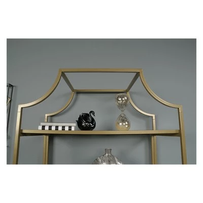 Give your space a sophisticated update with this bookcase from the International Lux collection. It features open shelving with safety-tempered glass so you can store and display books, plants, décor and more. Constructed from metal and finished in Satin Gold, this elegant bookcase will have any room in your home feeling luxurious and chic.