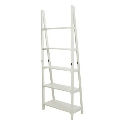 Whether you need the perfect space to display your flea-market finds, extra storage for your kitchen, or a home for your favorite books in your den, the brooking ladder bookcase will enhance any room. Solid wood frame construction features five veneer shelves with generous storage space, while its characteristic tilt preserves square footage, making it an ideal solution for smaller offices and apartment living.