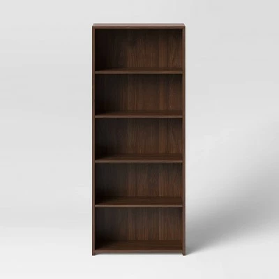 Add more storage space to your living space with this Brannandale 5-Shelf Bookcase from Project 62™. Crafted of laminated-finish wood, this bookshelf features a clean-lined silhouette in a walnut finish that blends effortlessly with any decor style. The five open, adjustable shelves are an ideal pick to keep your treasured books organized and accessible — from artwork to your favorite novels to picture albums and more — in any area of your home.