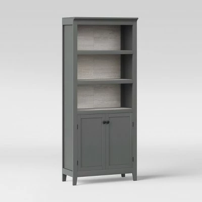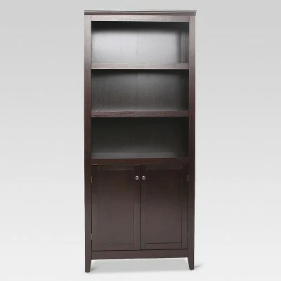Every well-read person deserves a place where they can store all of their literary treasures, and the 5-Shelf Bookcase with Doors from Thresholdâ„¢ is perfect for the job. This stately piece of furniture sets the stage for any dining room or home office with its gorgeous wood finishes and generous storage space. Keep your books and belongings in any of the three open shelves or the two adjustable lower shelves hidden behind cabinet doors.