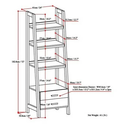 We love ladder shelves! They are ultimately practical and functional as well as a beauty to behold. Our Hawkins collection has two different types of ladder shelves – one with bottom drawer storage, and one without. You can use them individually, in a run – with multiple units strung together, or with our TV stand or office desk. These attractive units can be used in almost any room of the house for fully functional and attractive storage.Efforts are made to reproduce accurate colors, variations in color may occur due to computer monitor and photography.