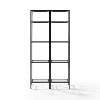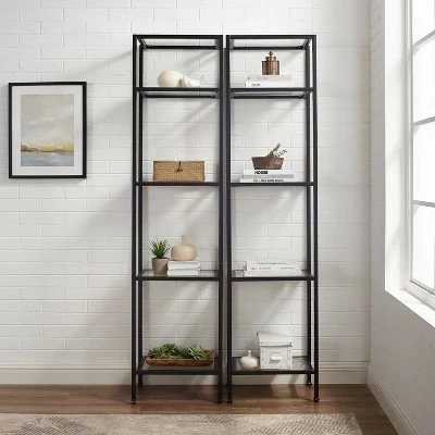 Stylish and modern, the Aimee 2 Piece Étagère Set is an eye-catching addition to any home. With a sturdy yet sleek steel frame, the Aimee Étagère Set can be paired with a variety of décor. The open, tempered glass shelves of the étagères are perfect for display and organization without overwhelming the room.