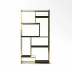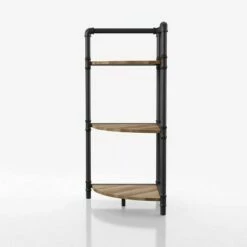 73.63" Moniave Bookcase with Wine Glass Rack Oak/Black – HOMES: Inside + Out