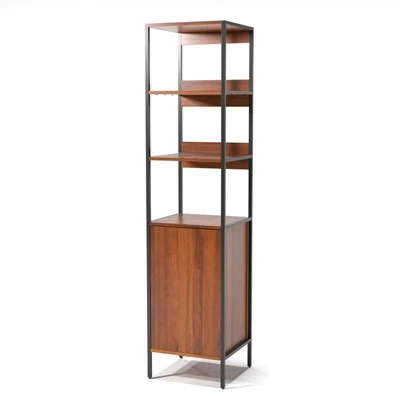 Bookcases aren’t just for holding the books. Though they make ideal homes for your teens paperbacks, they’re also perfect for staging framed family or friend photos, keeping baskets filled with accessories, and putting your potted plants on display. Take this one for example: Crafted from manufactured wood in natural finish and black metal, its openwork frame features a clean-lined silhouette while bottom compartment offers extra storage needs.Features : Includes: One (1) BookcaseStyle: ModernFinish: Natural ToneMaterials: MDF, Acacia Veneer, SteelSlim, tall design for compact spacesClosed cabinet in the baseThree open shelves and bottom cabinet with door accessTower design conserves spaceCombines open display with concealed storageMinimalist silhouette with an inviting two tone finishEasy to follow step by step assembly guide includedSpecifications : Product Dimensions : 17″W x 16″D x 72″HProduct Weight : 72 lbsWeight Capacity : 80 lbsAssembly Required : YesWarranty Description : 90-Day Manufacture Limited Replacement Parts Warranty
