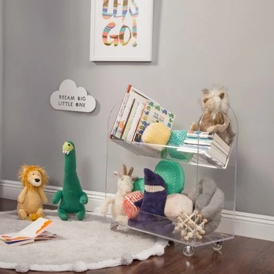 Open tiered library storage has never been more stylish or portable with the Presto Acrylic Bookcase and Cart. Roll those books and plush buddies wherever you and your lilβ bookworm go, knowing they can view and pick out just what is needed for storytime or play, pronto!