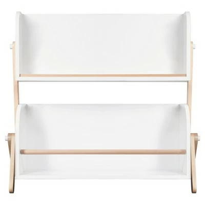 - Top shelf designed for displaying favorite books with lower storage cubbie for storing books, dolls, and toys