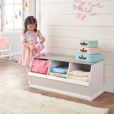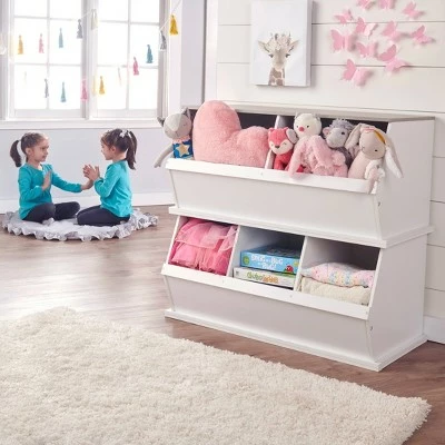 Badger Basket’s Three Bin Stackable Storage Cubby/Bin is a sturdy, modular storage solution for keeping all sorts of items tidy in any room. Features three, large, open compartments and it can be stacked with other bins to expand your storage capacity (each unit sold separately). Use for storing books, papers, media, dolls, toys, sporting goods, games, craft supplies, linens, and more! Wide mouth openings make it easy to load and unload. When you need to clean up quickly, it is a breeze to stuff everything inside! Great for kids when learning to sort and organize. Top surface offers an additional place to keep collections and trophies. Easy to clean, solid panel, smooth surface construction. Made of engineered wood with melamine lamination. Badger Basket’s Three-Bin units can mix and match with Badger’s Two-Bin and Shelf Storage units. Overall unit measures approximately 37.25 inches L x 19.25 inches W x 17.25 inches H. Each bin measures 11 inches L x 17.25 inches W x 15.75 inches H. Height from floor to top edge of front panel is 9.25 inches. Assembled weight: 33.5 pounds. All measurements approximate. Wipe clean and dry thoroughly. Adult assembly required. When stacking multiple bins, you must always use the included safety brackets to secure the units together. If stacking three or more bins high, we recommend using wall anchor/furniture safety straps (not included) to anchor the units to the wall for safety. Wall anchor straps are not included due to the many types of walls found in homes. Please consult with your local hardware retailer. Product may vary slightly from shown. Props/accessories shown are for illustration purposes only. Product complies with all currently applicable safety standards. Actual color/finish may vary from screen display. This item ships in its original carton that may include a product photo. Soft plastic/rubber toys (such as balls) can react with the finish when left in prolonged contact. Be mindful of what is stored in the unit.