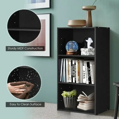 Do you need extra storage to organize you room? It’s time to use our practical and simple 3-tier storage shelf. Constructed of thickened MDF with premium durability, it has a very long service life. The floor-standing structure provides better stability, which giving you a safer using experience. The smooth and wear-resistant surface is very easy to clean and maintain. Most importantly, the 3-tier storage design can help you make the most of your limited space and provide ample storage and display space for your books, toys, potted plants and decorations. Adjustable shelves and multifunctional design can meet your various storage needs. Featuring clean lines and modern style, this beautiful and practical furniture is the perfect addition to your bedroom, living room and office. Specification: Color: Black. Material: MDF. Dimension: 17” x 11.5” x 31.5” (L x W x H). Net Weight: 19 lbs. Weight Capacity: 150 lbs. Package includes:. 1 x 3-Tier storage shelf. 1 x Instruction.
