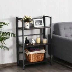 Costway 4-tier S-Shaped Bookcase Free Standing Storage Rack Wooden Display Decor Black