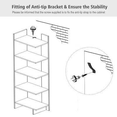 - Spacious Storage Space & Space Saving Design: It has 5 open shelves to offer plenty of storage space for books, photo frames, office supplies and decorative items. Most importantly, the compact design eliminates the need for excessive floor space and maximizes space utilization. It can make your room clean and tidy.