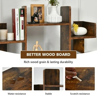 If you are looking for a bookcase, look no further! Our bookcase combines industrial style with a creative tree shape, forming a beautiful bookcase with surprise. Functionally, it has 13 shelves to organize your CDs, albums, books, plants, and more, as well as divide your room. And it is also a great addition and decoration itself in your living room, office, and study. Thanks to the premium wood material, this bookshelf turns out to be stable and durable. And with an anti-toppling device and anti-skid foot rings, this bookcase is good at keeping balance and all. Specification: Color: Rustic Brown. Material: Engineered Wood. Product Dimension: 34” x 10” x 55.5” (L x W x H). Weight Capacity of Each Lattice: 11 lbs. Net Weight: 47 lbs. Package Includes:. 1 x Wooden Bookshelf. 1 x Instruction Manual.
