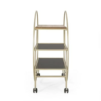 IRON FRAME WITH WHEELS: Constructed of iron and finished with a gold color, the frame of this bookshelf is made to be incredibly durable, ensuring that this piece will hold up under use. The bottom of the frame is finished with wheels, allowing easy mobility if needed.