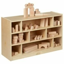 ECR4Kids Book Displays let little ones see all of their favorite books on display in easy-to-reach shelves that make story time simple. Use this bookcase’s low, forward-facing shelves to keep all of your kids’ or classroom’s favorite books neatly organized and easily accessible. Easy-to-reach storage compartments display kids’ favorite picture books, magazines and other literature, while the shelves on the other side can store larger items like puzzles and games. Built out of durable veneered birch wood and sturdy hardware. Birch wood is strong, rot resistant, free of knots and has a clean, contemporary look. Smooth wood edges help prevent injury, while the display’s low center of gravity helps prevent tipping. Casters included for mobility. Easily wipe clean with a mild soap and water solution or with your favorite bleach-free wipe. Our furniture is GREENGUARD [GOLD] Certified for low VOCs and contributes healthier indoor air, TSCA, CARB Phase 2, Lacey Act and CPSIA-compliant; made with non-toxic, lead-free materials. We adhere to strict safety regulations to ensure your child’s well-being. ECR4Kids is committed to enhancing education in the classroom and at home. We’re your partner for pre-K and beyond. | front shelves measure 34.75″ W x 1.5″ D x 8″ H | back compartments measure 34.75″ W x 11″ D x 13″ H