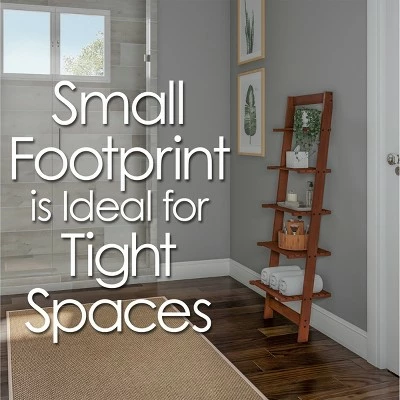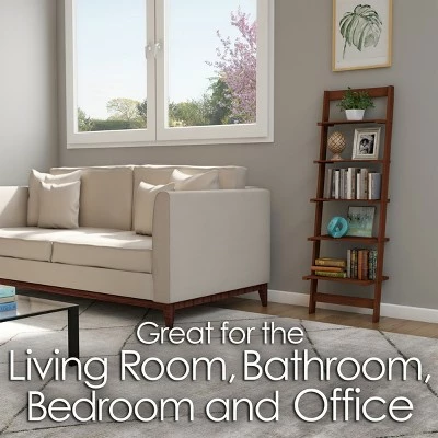 Store books or display pictures, small trophies, or other decorations on this Hastings Home 5-Tier Ladder-Style Bookcase. This compact, attractive bookcase has a stylish walnut finish that makes it an inviting addition to your living room, bedroom, or study. The bookcase is easy to assemble and lightweight enough to move around as desired.