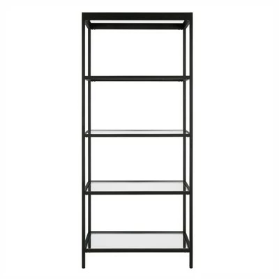 Clean, minimalist lines and sturdy tempered glass make this 70” bookcase the perfect storage space in any room. Proudly display your book collection, magazines and more on the 5 tiers of shelves. The streamlined look and neutral metallic finish pairs seamlessly with your existing color scheme and décor style.Features : Shelves are made of durable tempered glass.Tip-restraint kit included for safety.Middle shelves have a weight capacity of 40 lbs each. The bottom shelf can hold 50 lbs.Clean with a soft, dry cloth; no harsh chemicals or abrasive cleaning materials.Features easy assembly.Specifications : Product Dimensions : 14″ x 30″ x 70″Product Weight : 60.85 lbs
