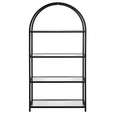 Showcase your favorite books and decorative items with this Art Deco-inspired 4-tiered bookcase. Clean architectural lines evoke a modern look, while the arched frame adds a pop of retro styling. Crafted of steel and sturdy tempered glass, its finished in a classic neutral metallic tone, allowing it to pair effortlessly with your existing den or home office décor.Features : Handcrafted finish applied to a steel frameCrafted of durable steel and tempered glass.Tip restraint hardware included.Features easy assembly.Clean with a soft, dry cloth; no harsh chemicals or abrasive cleaning materials.Specifications : Product Dimensions : 8H x 37.5W x 36.5DProduct Weight : 52.7 lbs