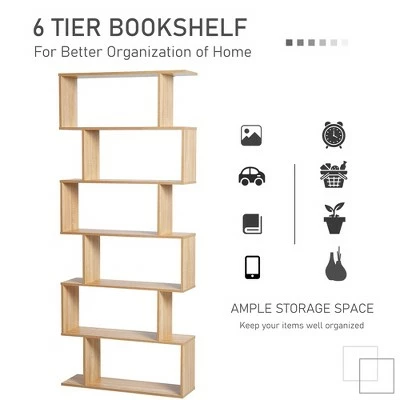 - AMPLE STORAGE: This s-shaped 6 shelf bookcase offers multiple shelves for convenient displaying and storing your favorite books, plants, photos, candles, and collectables in your home or office.