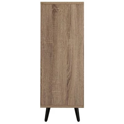 Inspired by Dubai’s design collector’s fair, this mid-century étagère is a contemporary classic. Its ample asymmetrical shelves and three drawers feature a smooth oak finish and bold black sputnik-style legs to create a luxurious statement in any living room. Showcase your items with style with its multi-shape shelves or keep them tucked neatly away by utilizing its three drawers. The Marina Retro Wooden étagère is a wonderful addition for contemporary and modern rooms. It requires assembly.