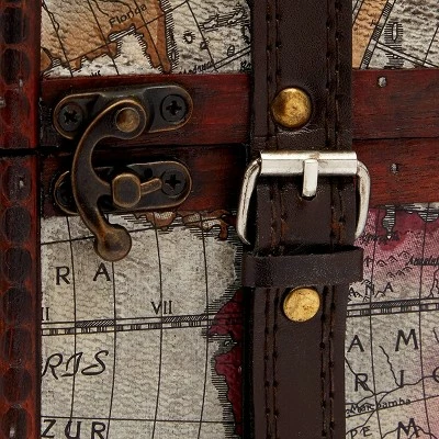 - Antique Chest: Crafted from wood, brass and faux leather; Each wine storage box is as decorative as it is functional with an intricate map design