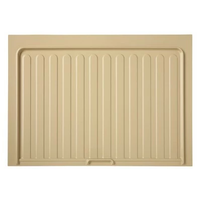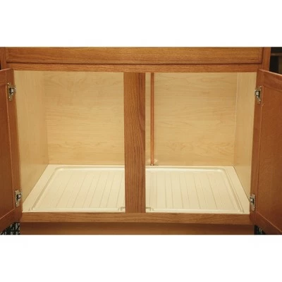 The Rev-A-Shelf Plastic Under Sink Base Drip Tray is your first line of defense against under sink cabinet damage from minor leaks. The unique design not only protects the bottom of your cabinet by holding water, but the tray actually funnels excessive water to the front of your cabinet and out onto the floor so you can tell when it’s leaking. Made of durable plastic that does not fold or bend, it’s easy to wipe up and is resistant to most household chemicals. Double-check your cabinet’s opening (inside dimensions) to allow the best fit. Measure side to side (width), front to back (depth or length), and top to bottom (height). Double-check to make sure your product is within measurements and don’t forget to take into account any obstructions (plumbing, hinges, etc.). This sink base tray will fit your 30-inch sink base kitchen cabinet that has a minimum trim size of 25.5 by 21.5 inches.