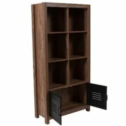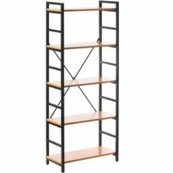 Fabulaxe Industrial 5 Shelf Wood and Metal Etagere Rustic Bookcase Free Standing Bookshelf
