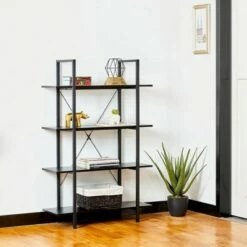 Modern Life Double 3 Shelves Bookcase Credenza – OSP Home Furnishings Black