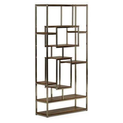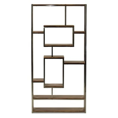 Lend a minimalistic touch to your decor with this Chrome Adina Bookcase from Steve Silver Co. A sturdy and elegant addition for modern homes, offices and living rooms, this eye-catching bookcase has a two-tone geometric design with shelves of varying sizes for ample storage space. Framed with sturdy metal, this bookcase with multiple open shelves offers abundant storage and display space for your all your literary works and art collections. The fixed wooden shelves come in a natural finish, while the chrome frame provides a gleaming touch to the modern design.