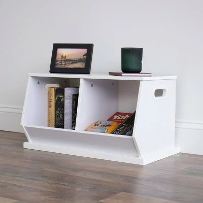 - 2 angled open compartments for stylish storage in any room